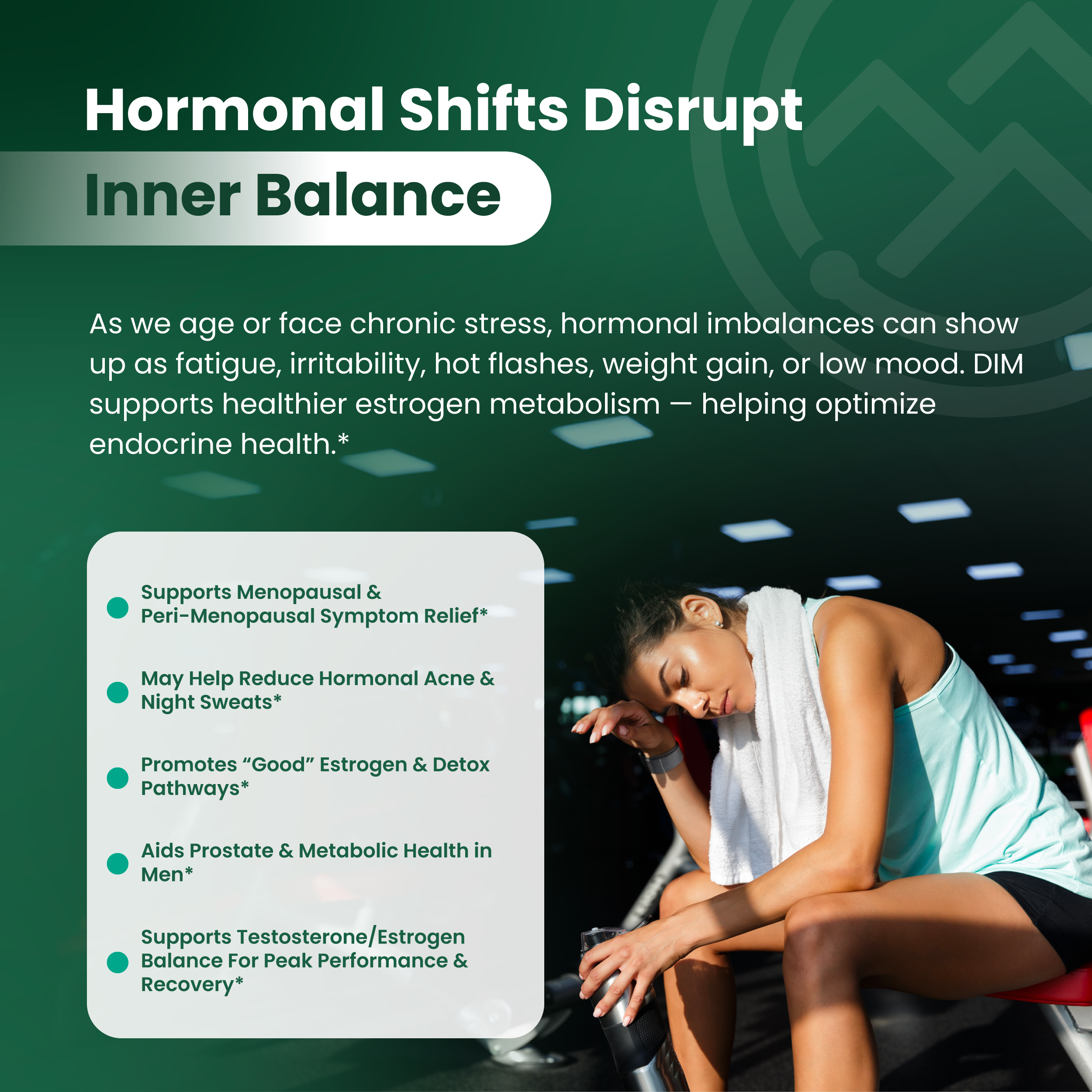 Rather than acting as a hormone itself, DIM works by supporting the body’s natural processes involved in hormone metabolism.*
