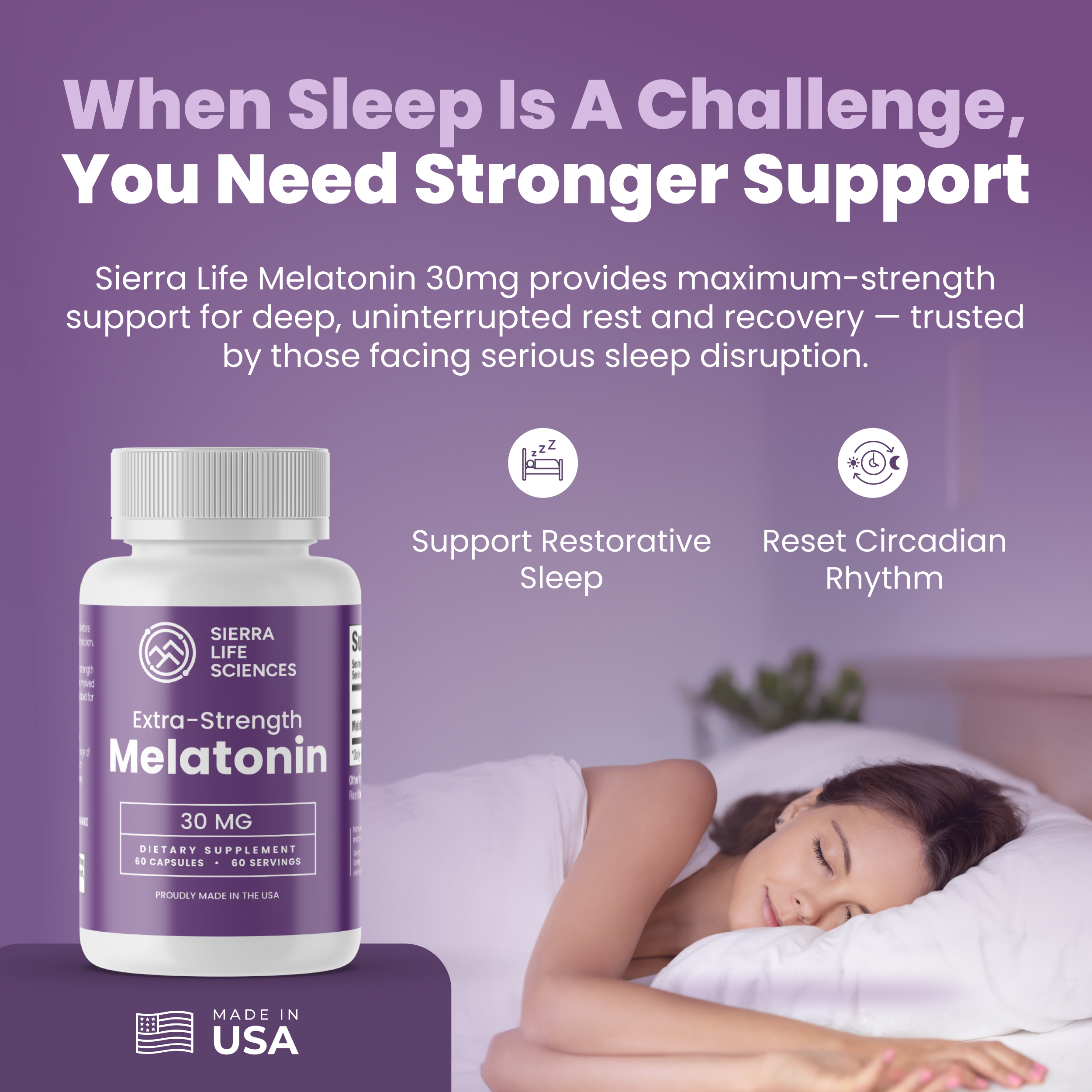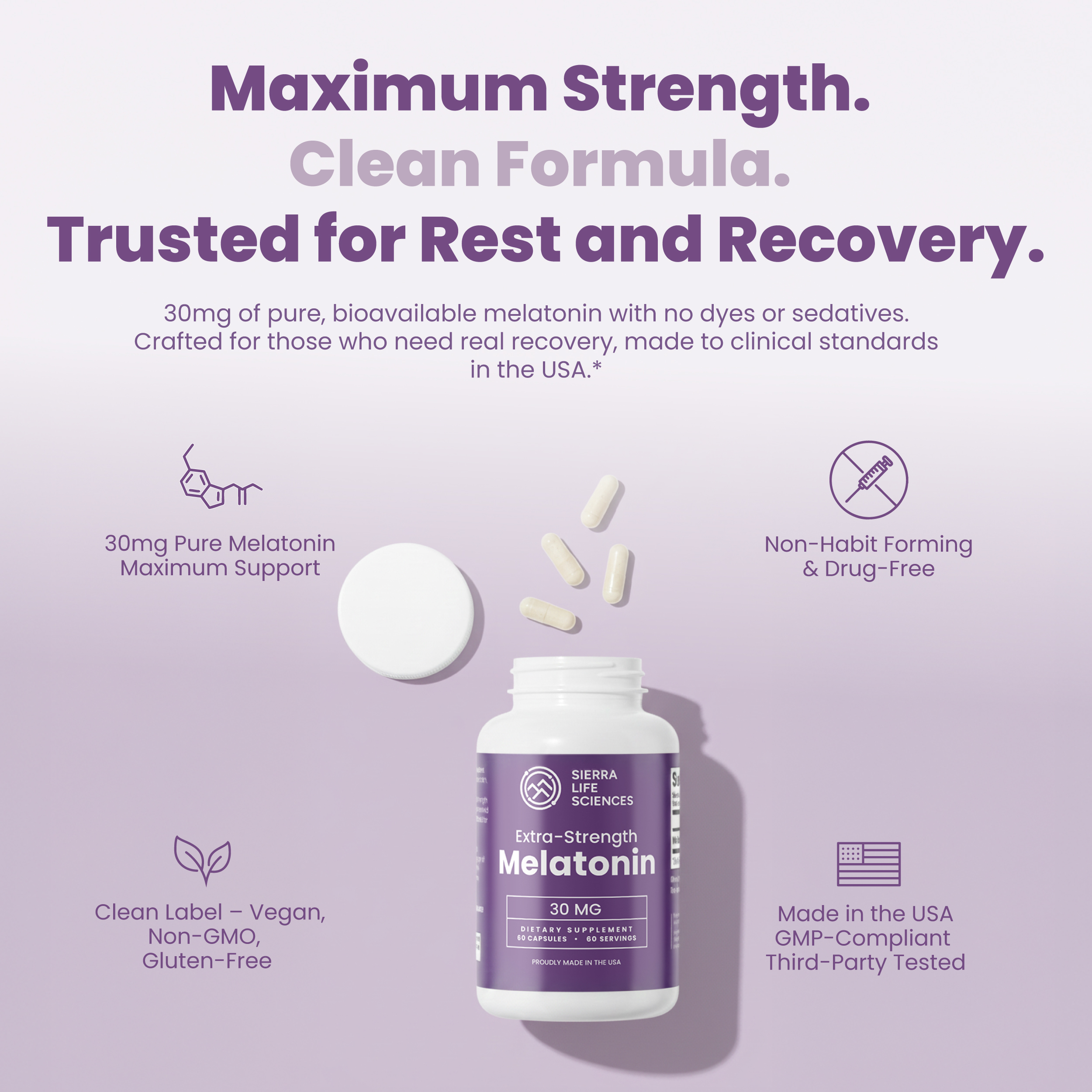 High-Potency Sleep Support: Each capsule delivers 30mg of melatonin, providing strong support for those needing help regulating their sleep-wake cycle.