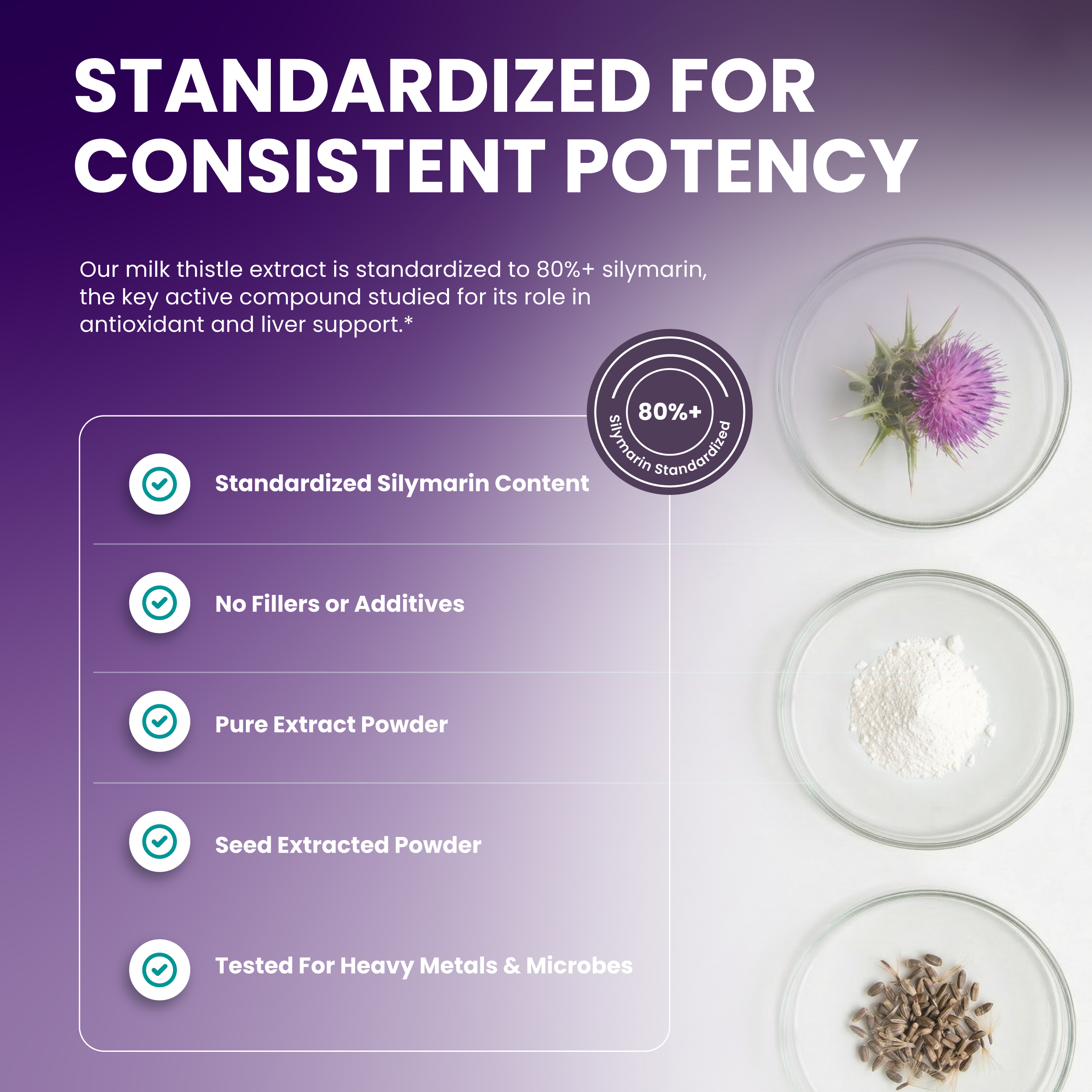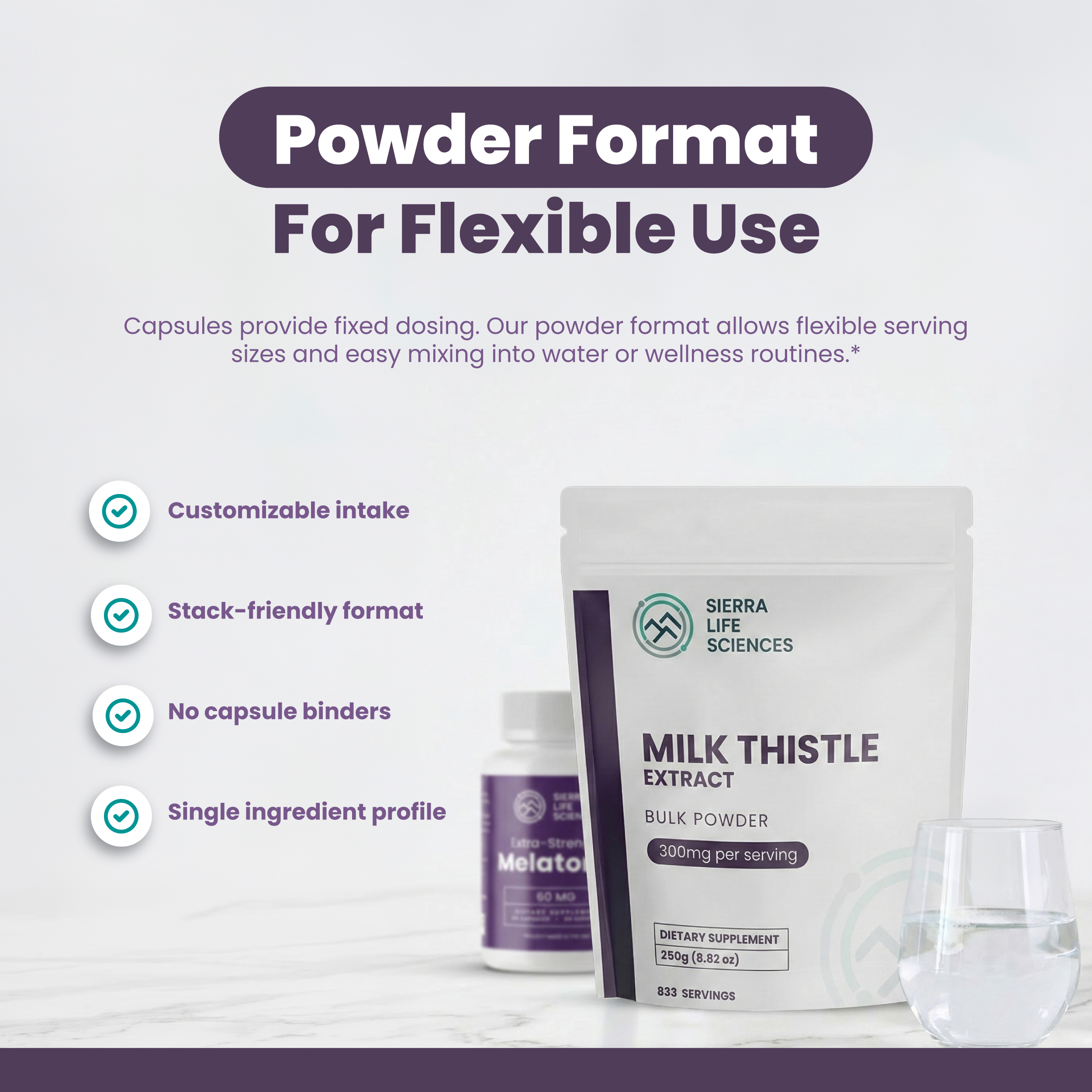Bulk powder allows users to easily customize serving sizes and incorporate milk thistle into their preferred supplement routine.